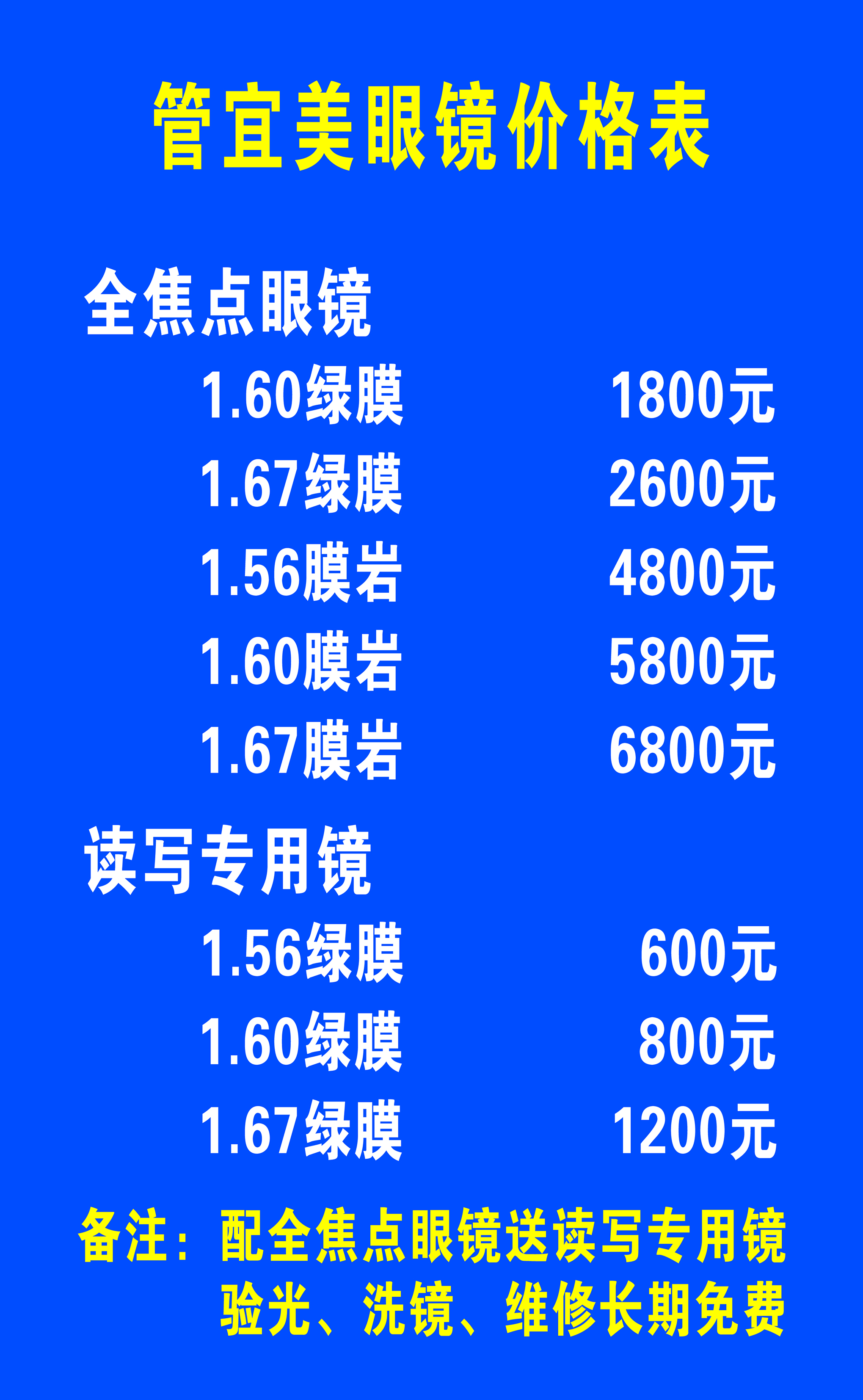 管宜美眼镜价格表